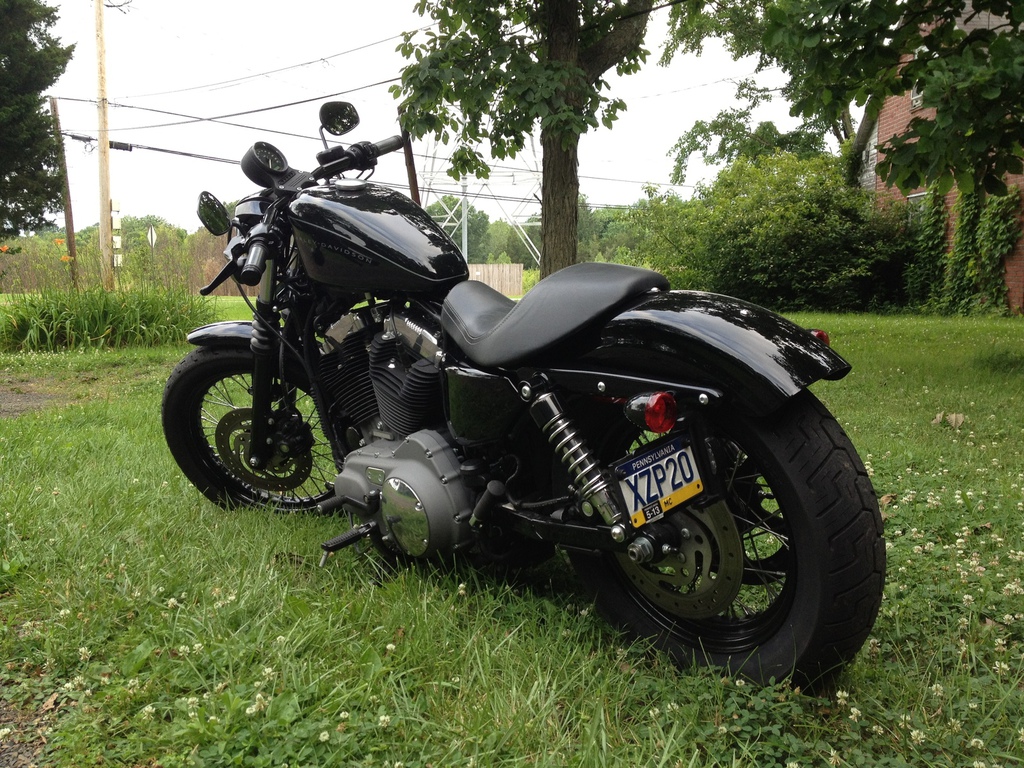 We only work on cars, but our founder, John, once decided to own a Harley-Davidson Nightster, and had to modify it to meet his desires. This bike was bought new and un-palleted. Modifications were simple but effective. Vance and Hines short shot staggered pipes replaced the original Harley pieces after 10 miles. A Screamin' Eagle high flow intake and race tuner were installed and the bike was tuned. Anderson Cams were installed to assist with power of the small bike. The original Harley black paint was wet sanded and buffed up to Anderhart Speed standards. All plastic pieces were removed and replaced with custom fabricated aluminum pieces were necessary to remove the “mass productions” aesthetics. Rear suspension was modified to lower the rear of the bike. The tank front was raised, and the wiring was hidden below the fuel tank. Biltwell drag bars were added with Harley grips to get the rider position correct, maintaining the original mid-mount controls. Lighting was modified and updated to LED, and smoked lenses were installed on everything.